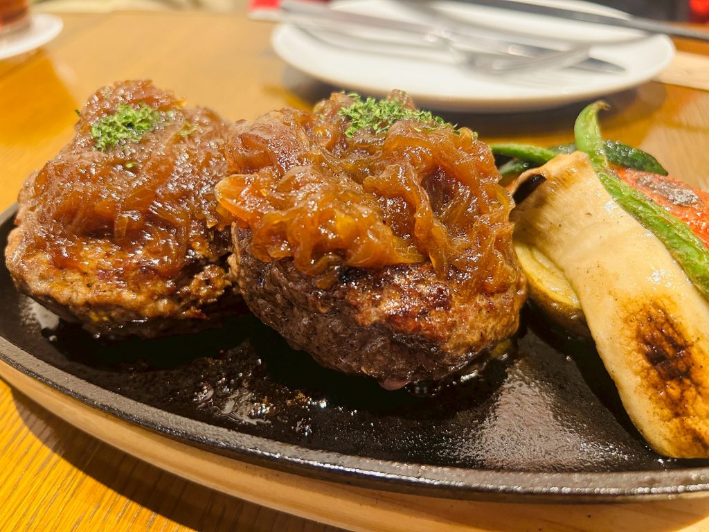 食べやすいサイズのハンバーグが2個乗って席に届きます。