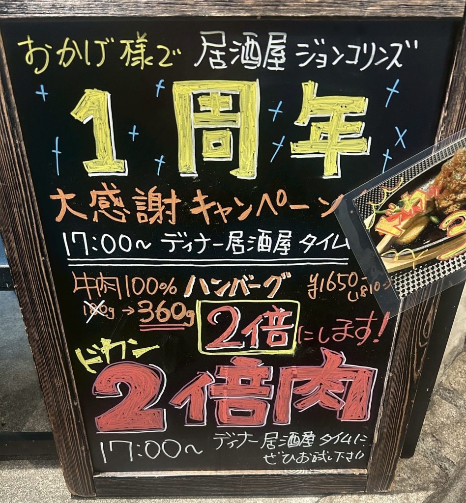 【田町・芝浦】居酒屋ジョンコリンズが1周年記念!大満足のハンバーグと絶品チーズケーキを堪能!