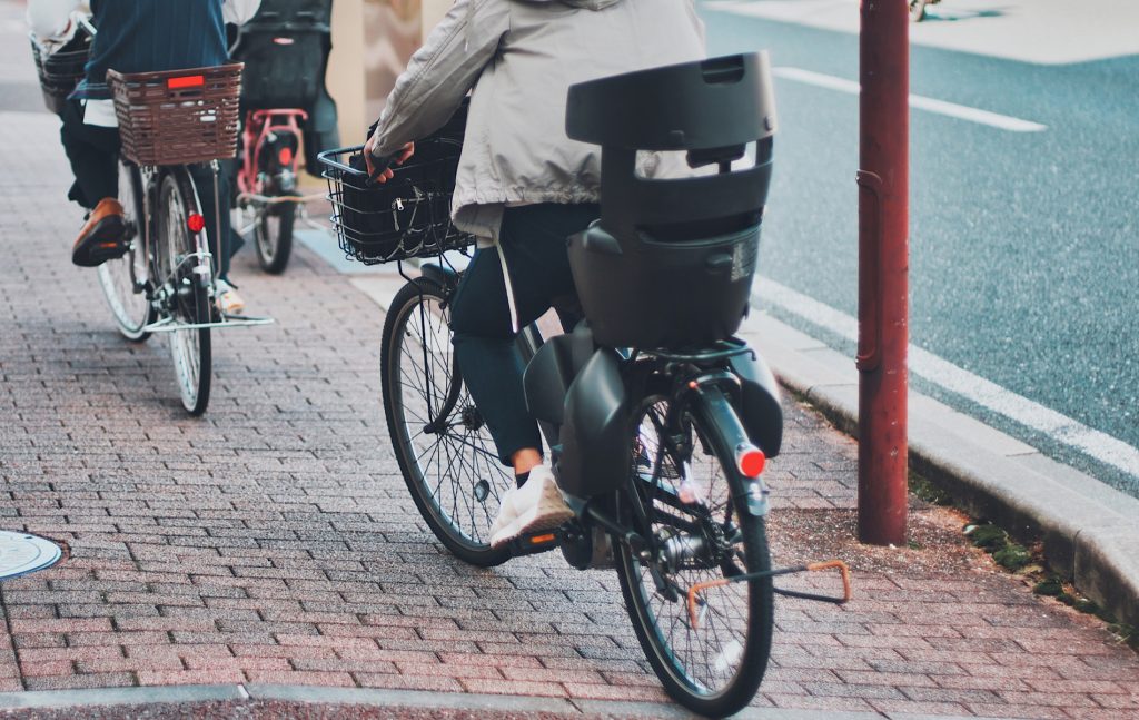 電動アシスト自転車を使用している方も増えてきました。重い荷物や子どもを乗せての走行時の負担軽減にも便利です。